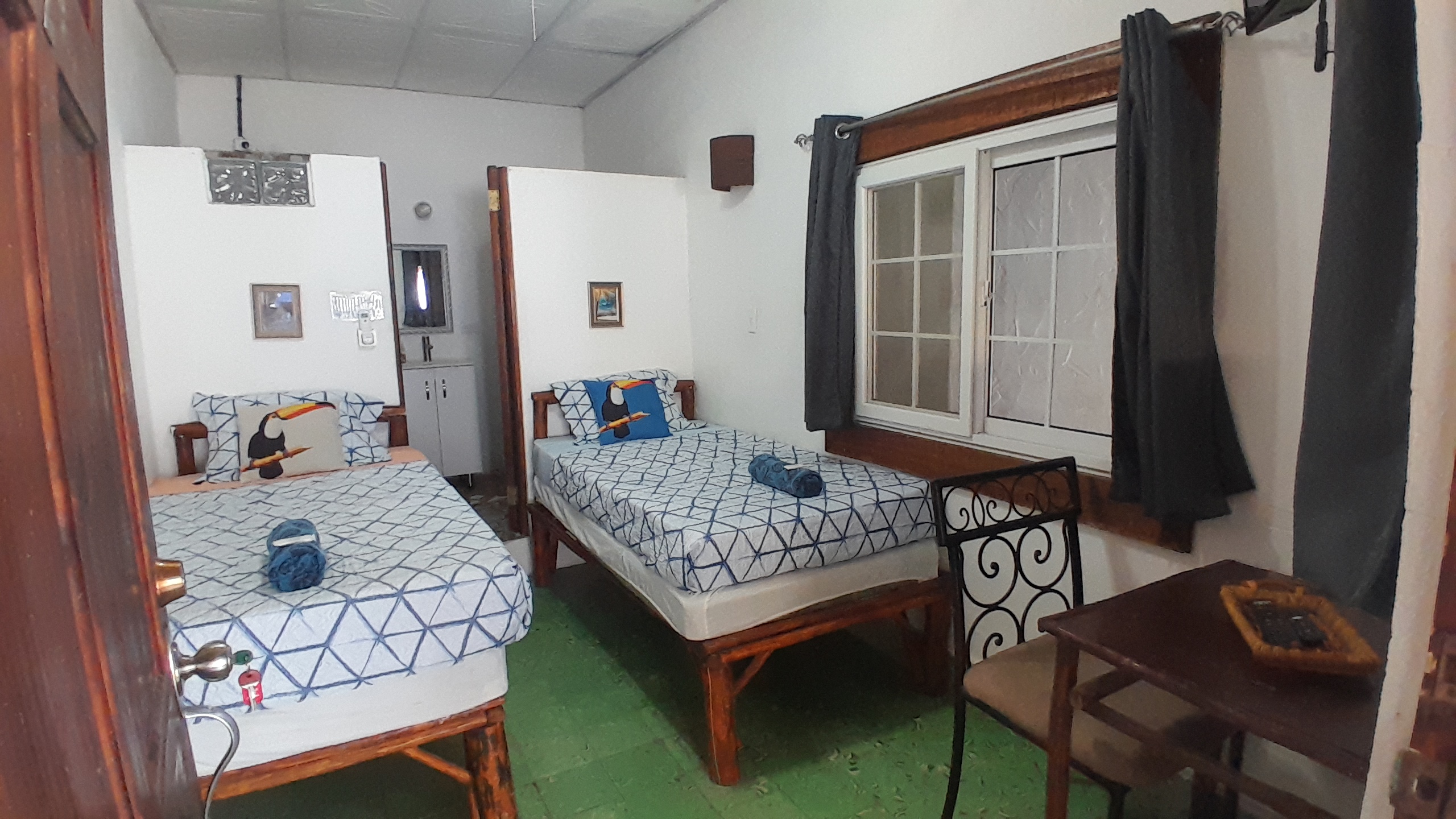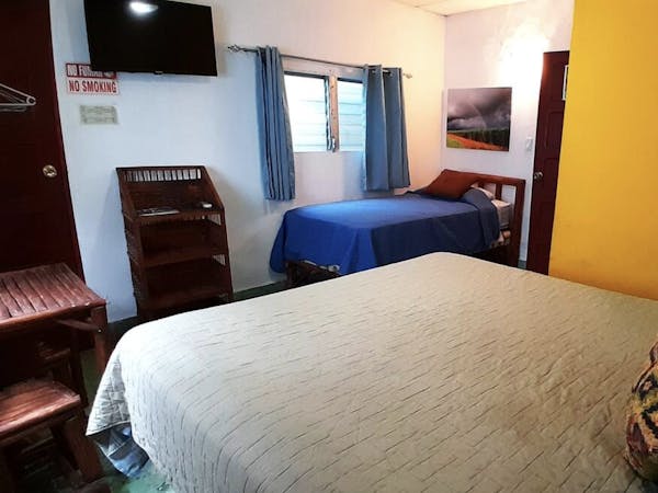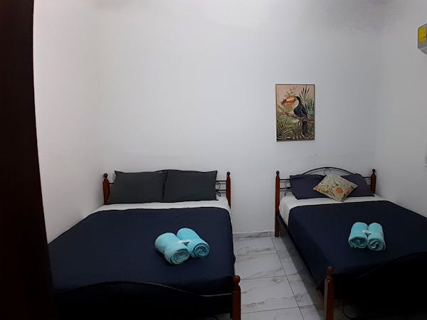 Enjoy our comfortable Double Family Room fitted with two double beds for families or friends. AC, TV and WiFi included in the room, as well as a private bathroom with hot water.