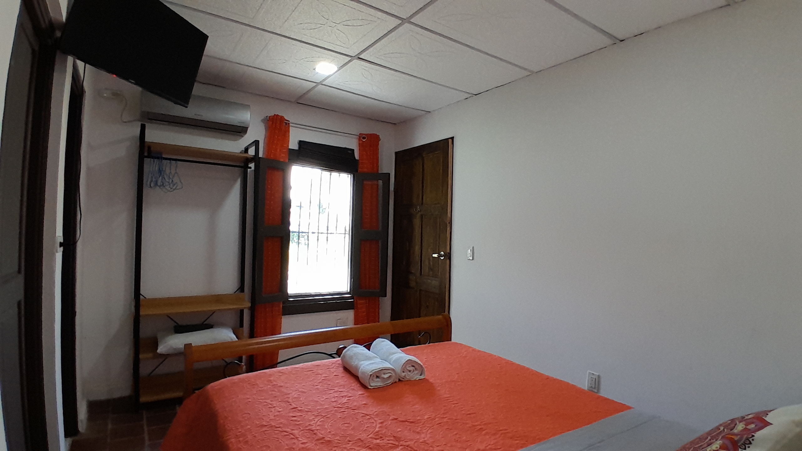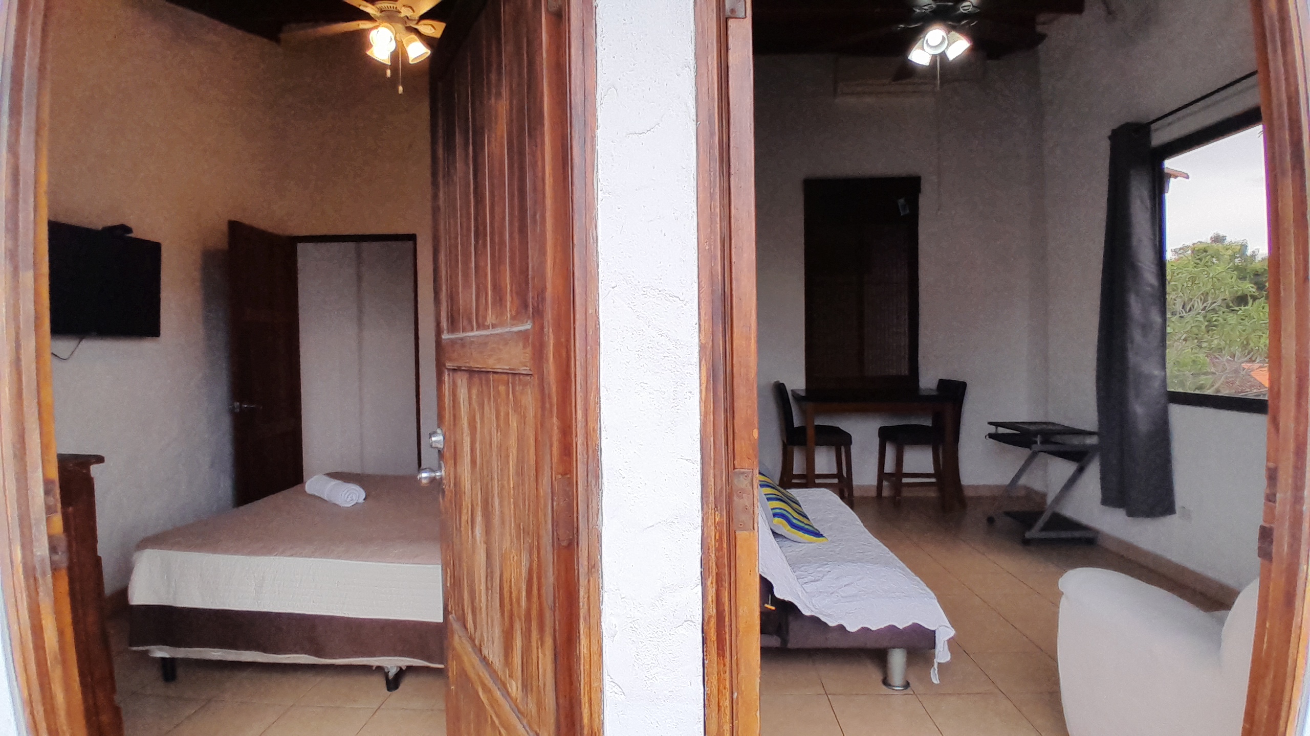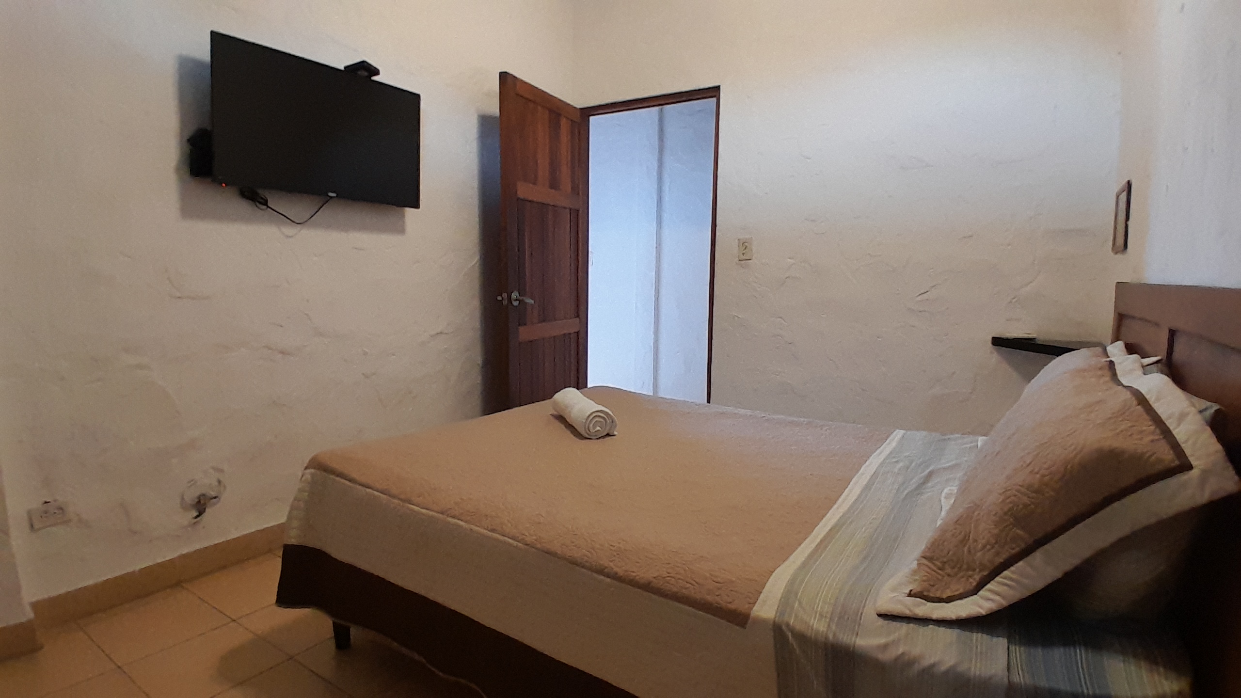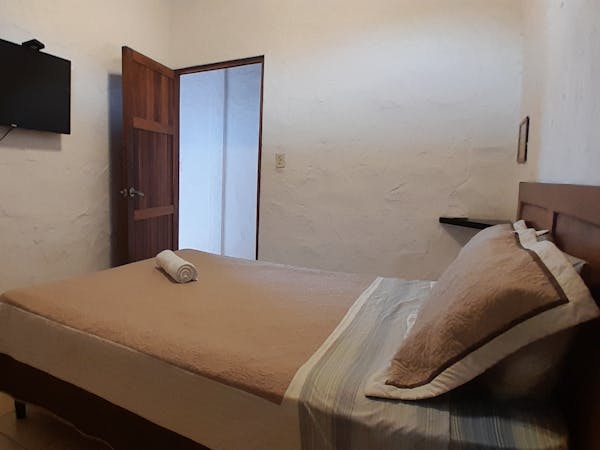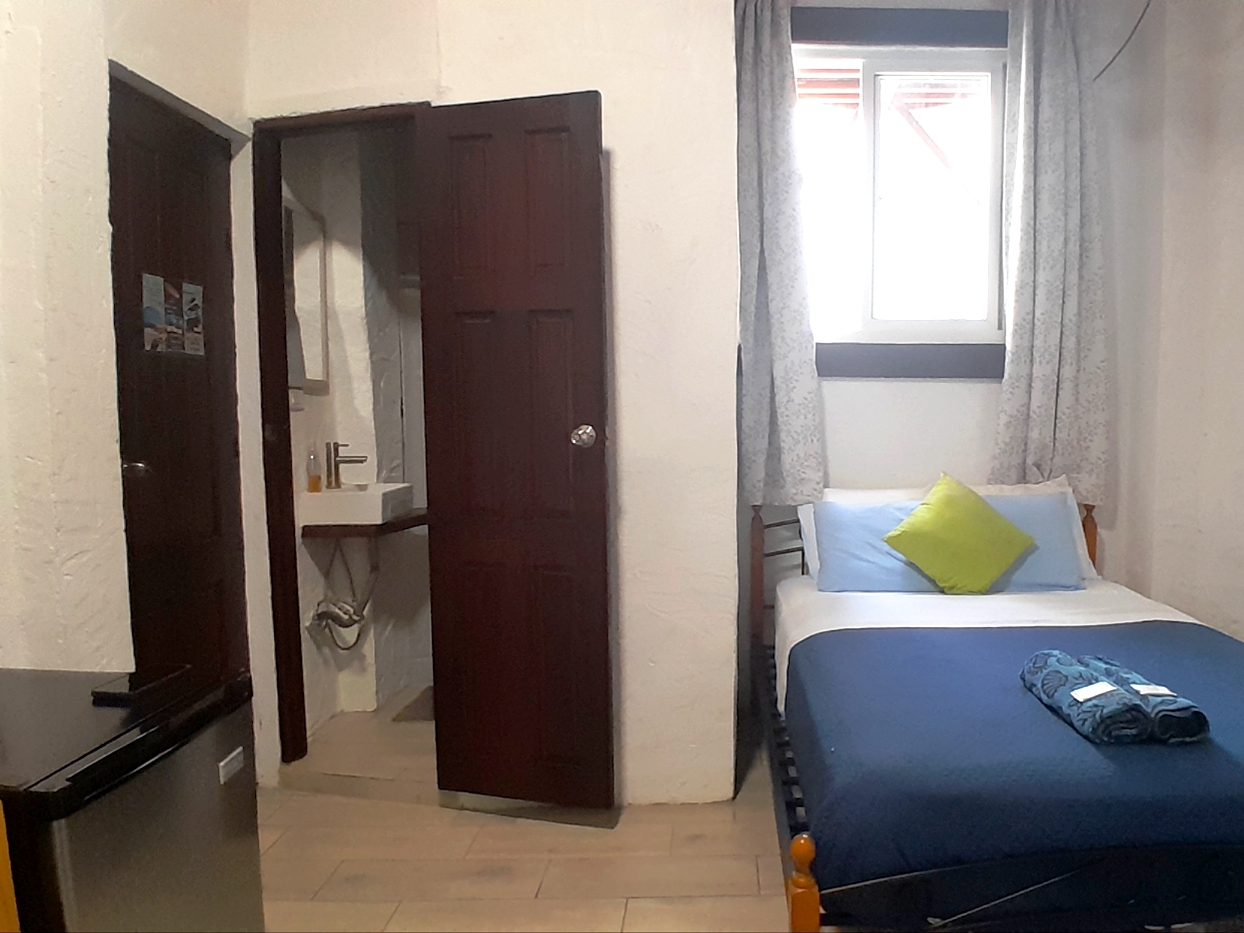 Enjoy our basic Double Room fitted with a comfortable double bed perfect for couples or solo travelers. AC, TV and WiFi included in the room, as well as a private bathroom with hot water. Out front enjoy views of the park of San Carlos!