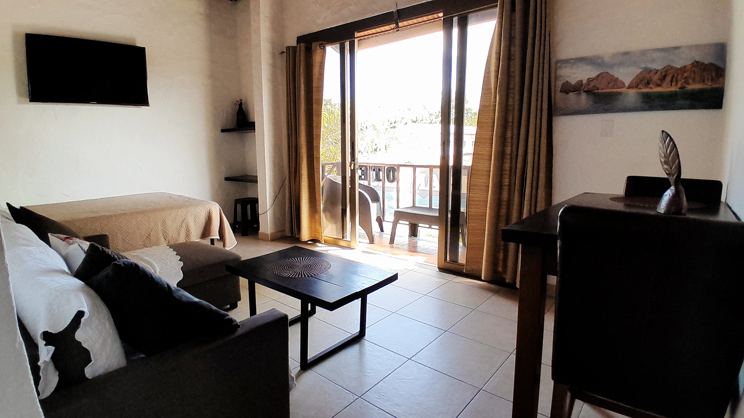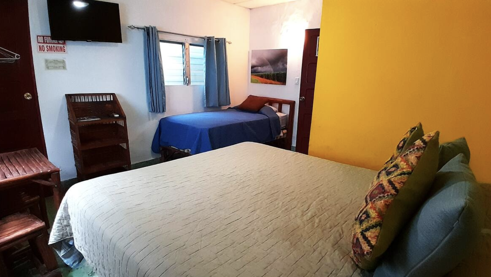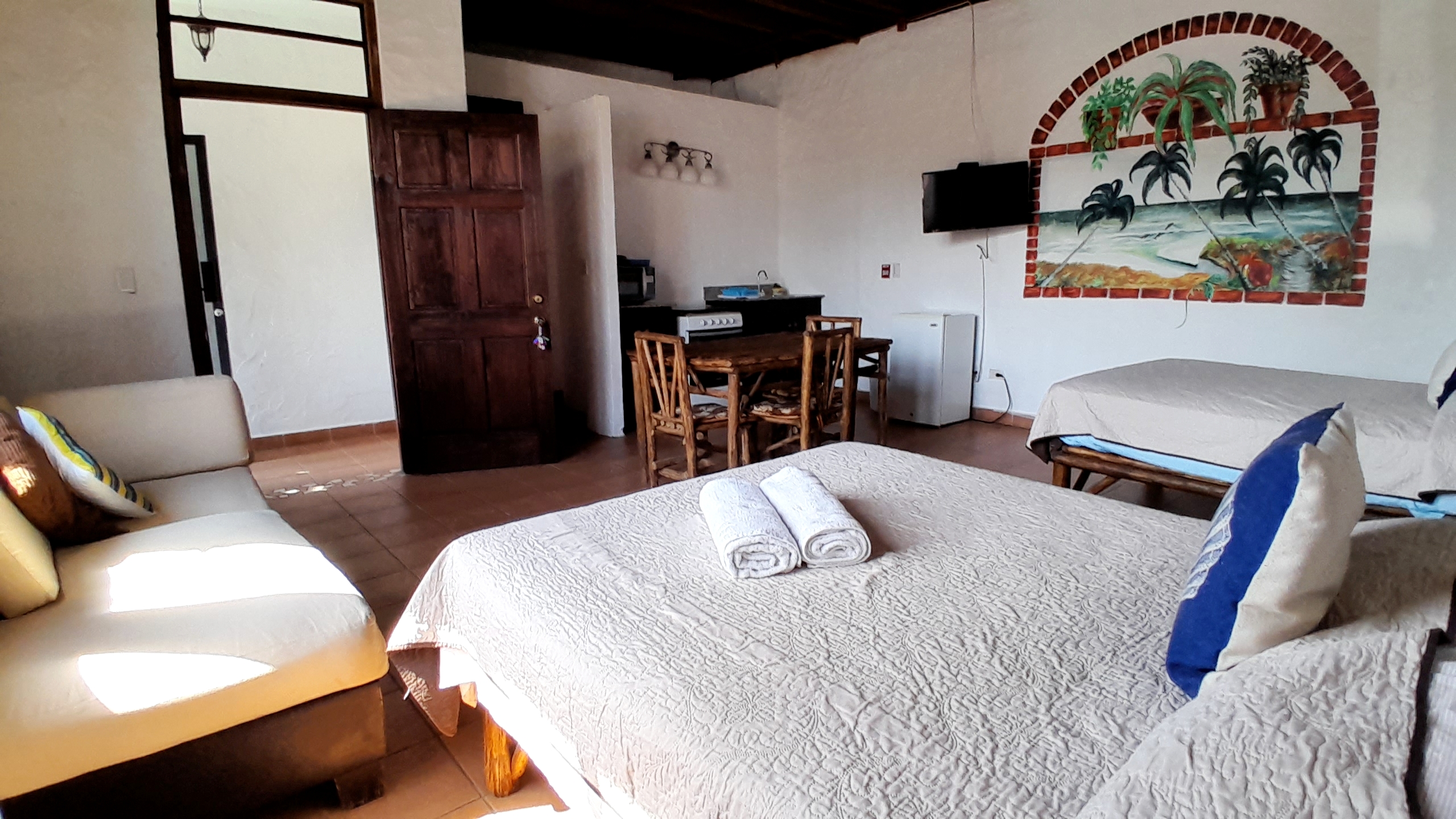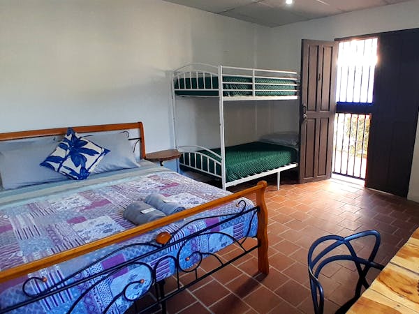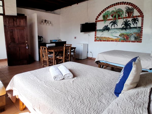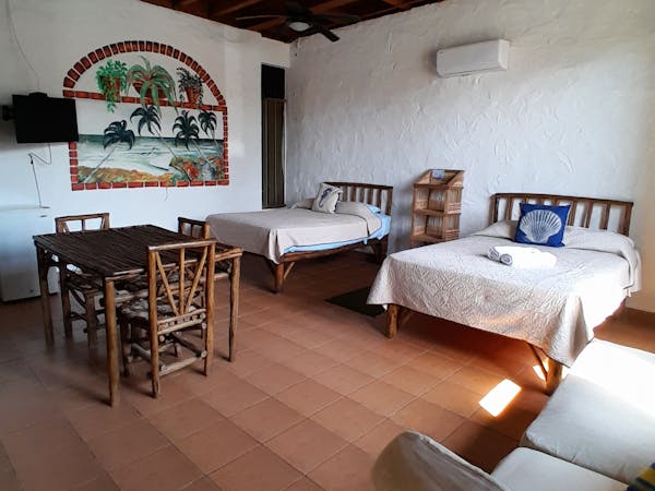 Enjoy our comfortable Family Room fitted with two double beds for families or friends. AC, TV and WiFi included in the room, as well as a private bathroom with hot water. Includes a kitchenette with fridge and stove/oven! Fantastic views of San Carlos Park