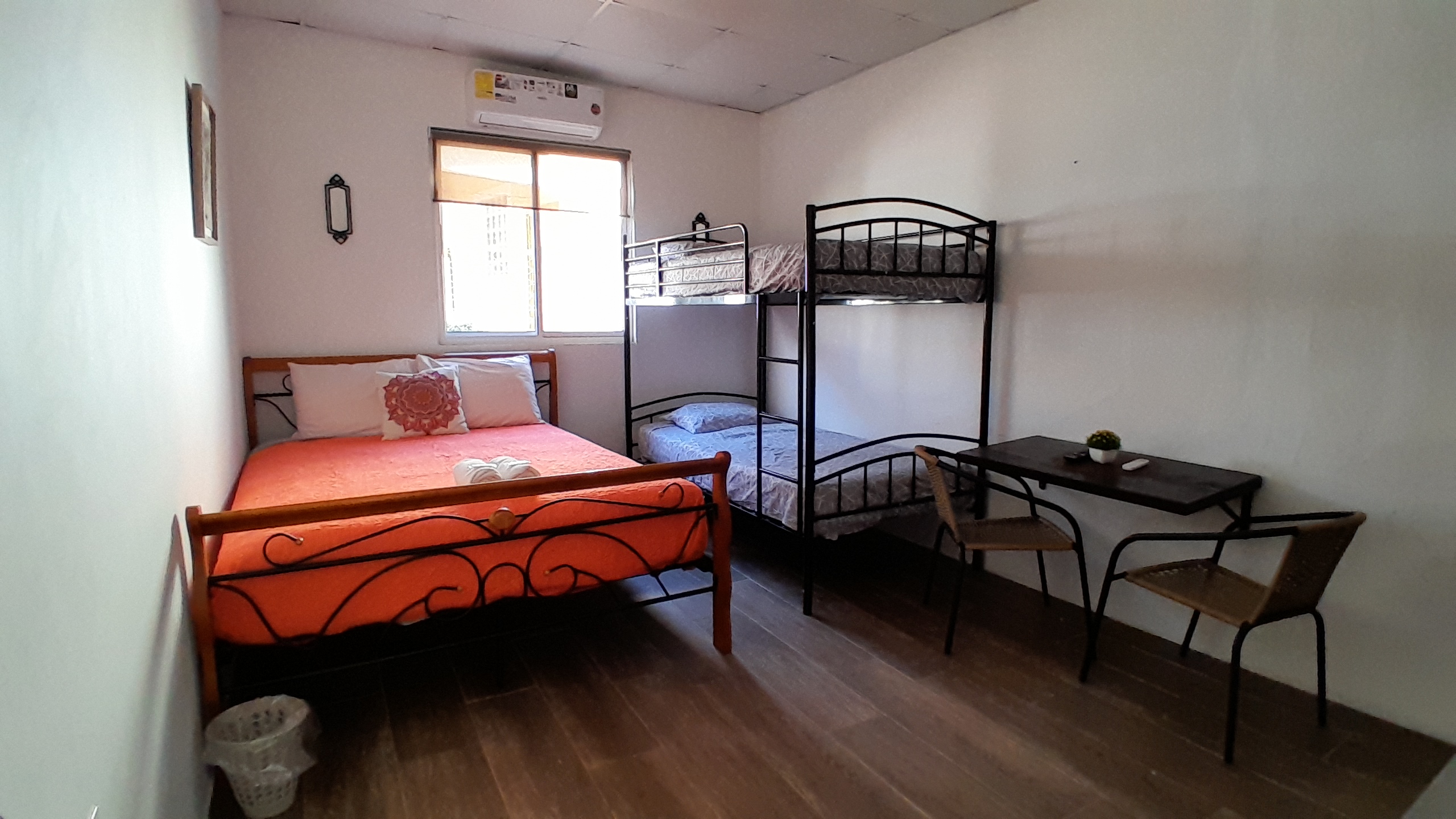 Our basic Twin Room is fitted with a bunkbed with two individual size mattresses perfect for friends or solo travelers. AC and WiFi included in the room, as well as a private bathroom with hot water.