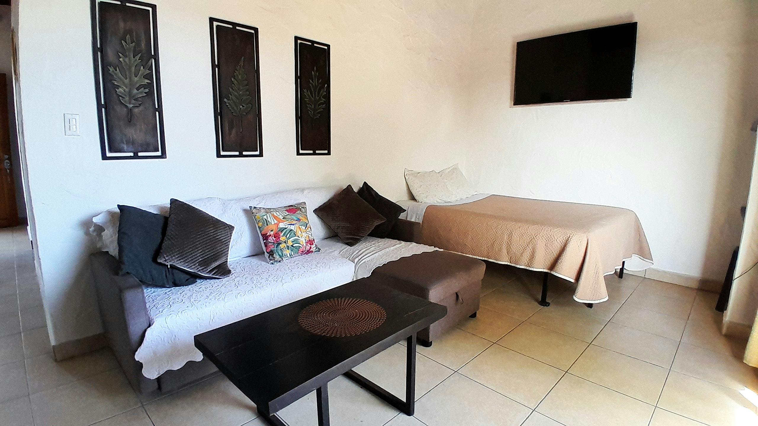 Enjoy our spacious Deluxe Apartment that is equipped with a private room with queen bed as well as a double bed and sofa bed in the living room perfect for couples, friends or families. AC, TV and WiFi included in the room, as well as a private bathroom with hot water. The kitchen is fully equipped with a stove/oven and fridge. The living room offers full park view as well as access to the private street and San Carlos Park view balcony.