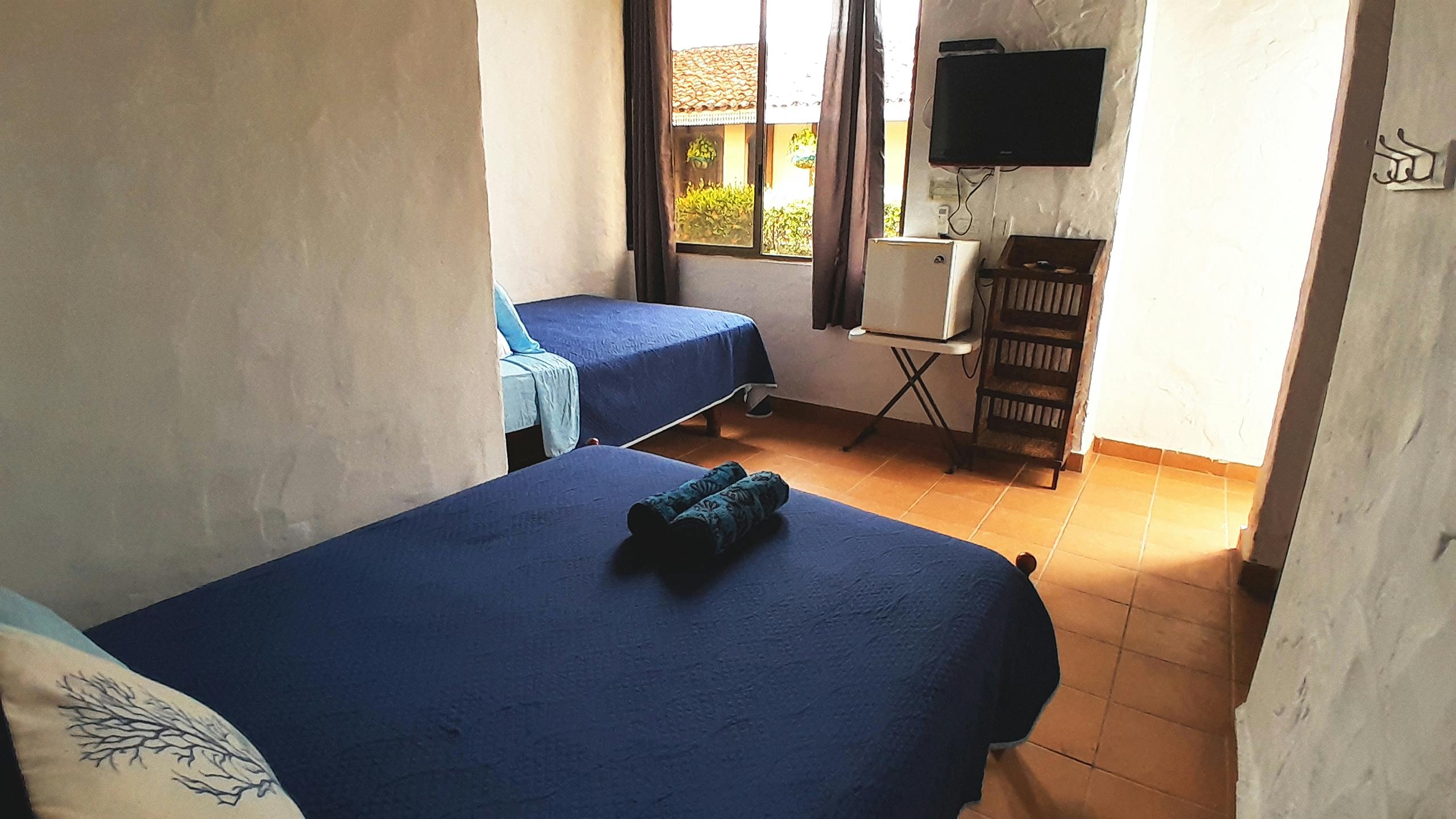 Enjoy our comfortable Double Family Room fitted with two double beds for families or friends. AC, TV and WiFi included in the room, as well as a private bathroom with hot water.