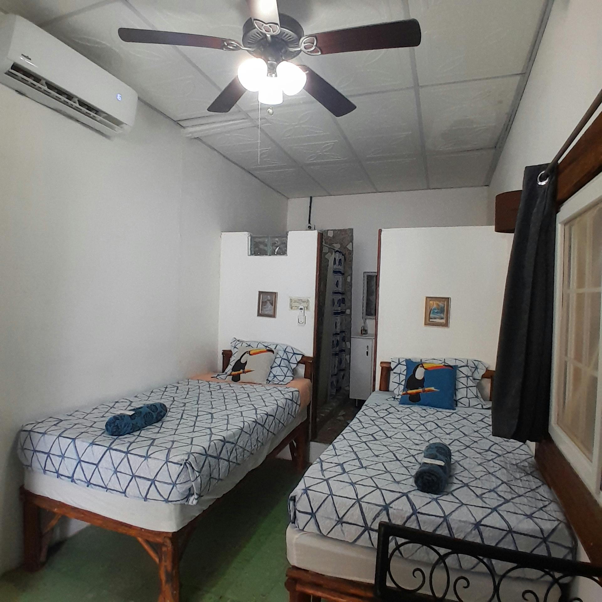 Enjoy our comfortable Twin Room fitted with two individual beds for friends or solo travelers. AC, TV and WiFi included in the room, as well as a private bathroom with hot water. Out front make use of your sweet front seating area after a day filled with adventure!