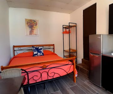 Enjoy our cozy Studio Apartment in our guesthouse fitted with a queen bed for couples or solo travelers. AC, TV and WiFi included in the room, as well as a private bathroom with hot water. Make use of the kitchenette with all of its cutlery and crockery! Don't forget to take a quick dip in the properties pool exclusive to the guesthouse only!